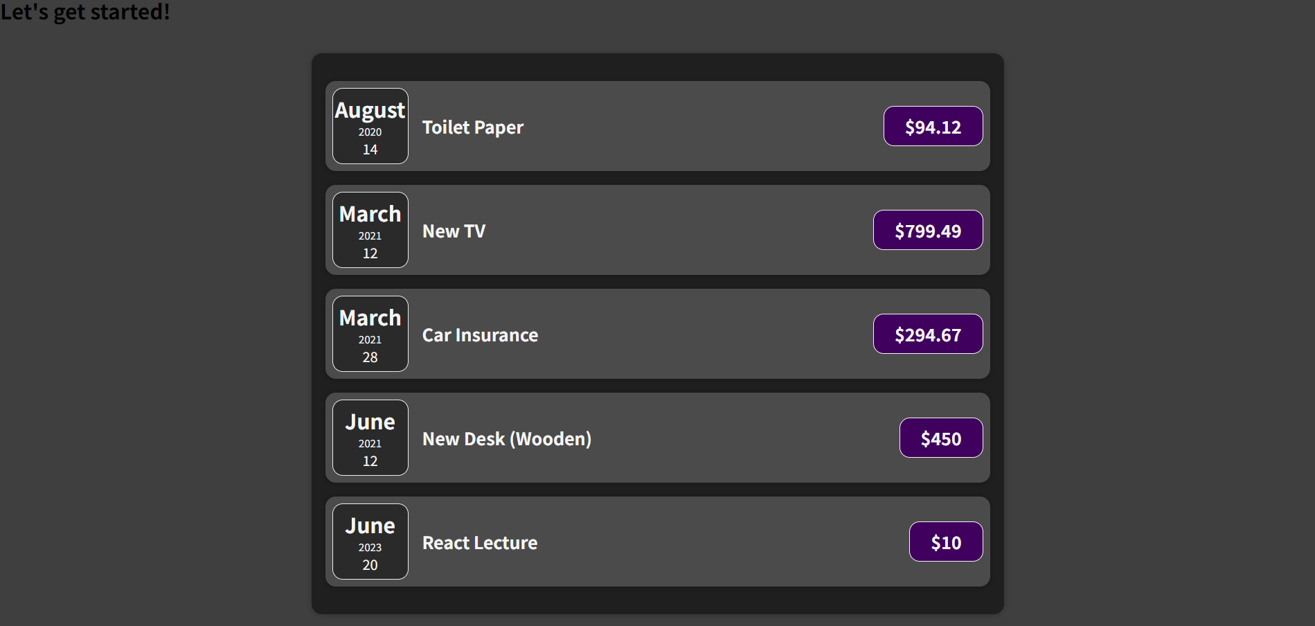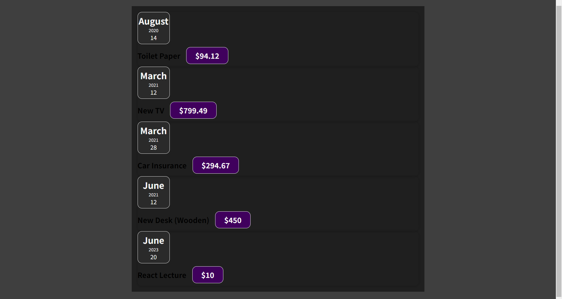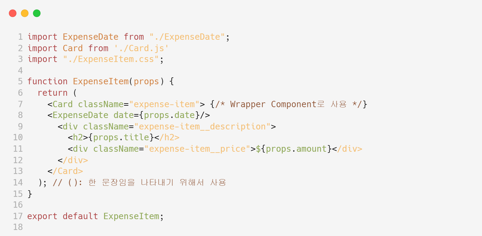 = ExpenseItem component를 객체 형태의 props로 Card component에 전달