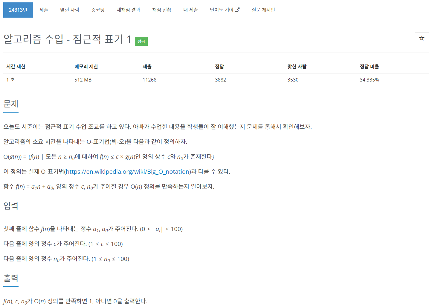 24313번: 알고리즘 수업 - 점근적 표기 1
