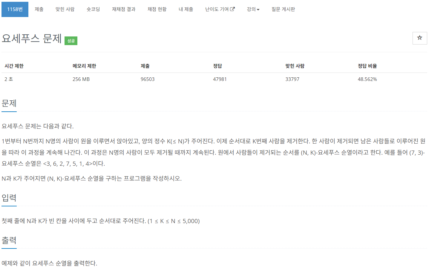 | [BaekJoon] 1158번 요세푸스 문제 풀이 (Success) (0) | 2023.08.29 |