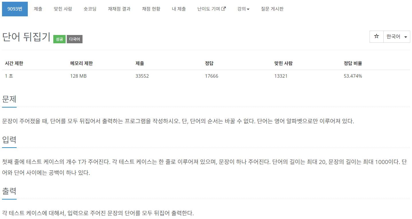 | [BaekJoon] 9093번 단어 뒤집기 문제 풀이 (Success) (0) | 2023.08.24 |