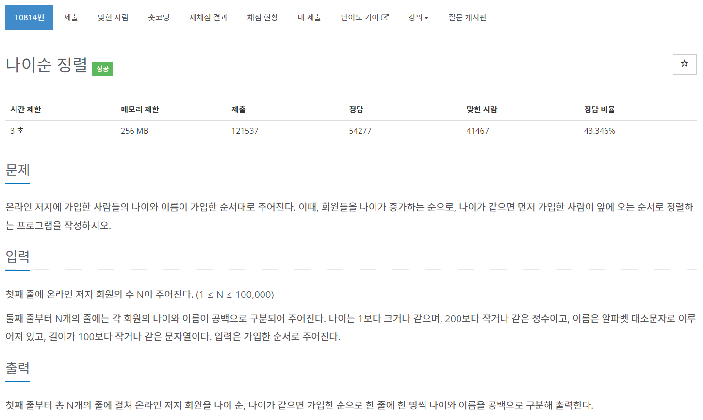 10814번: 나이순 정렬
