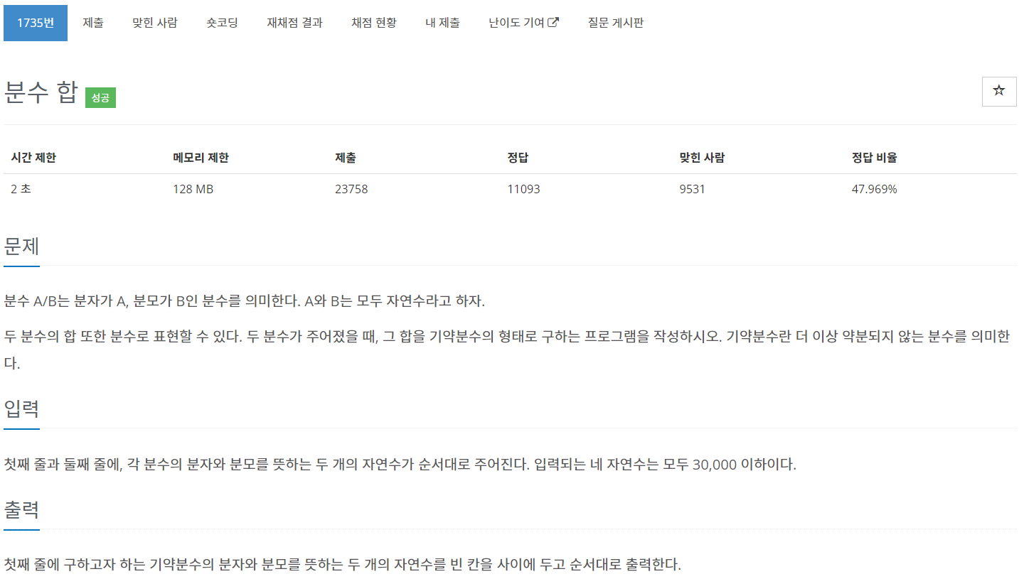 | [BaekJoon] 1735번 분수 합 문제풀이 (Success) (0) | 2023.08.09 |