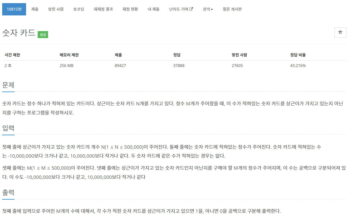 | [BaekJoon] 10815번 숫자 카드 문제풀이 (Success) (0) | 2023.08.10 |