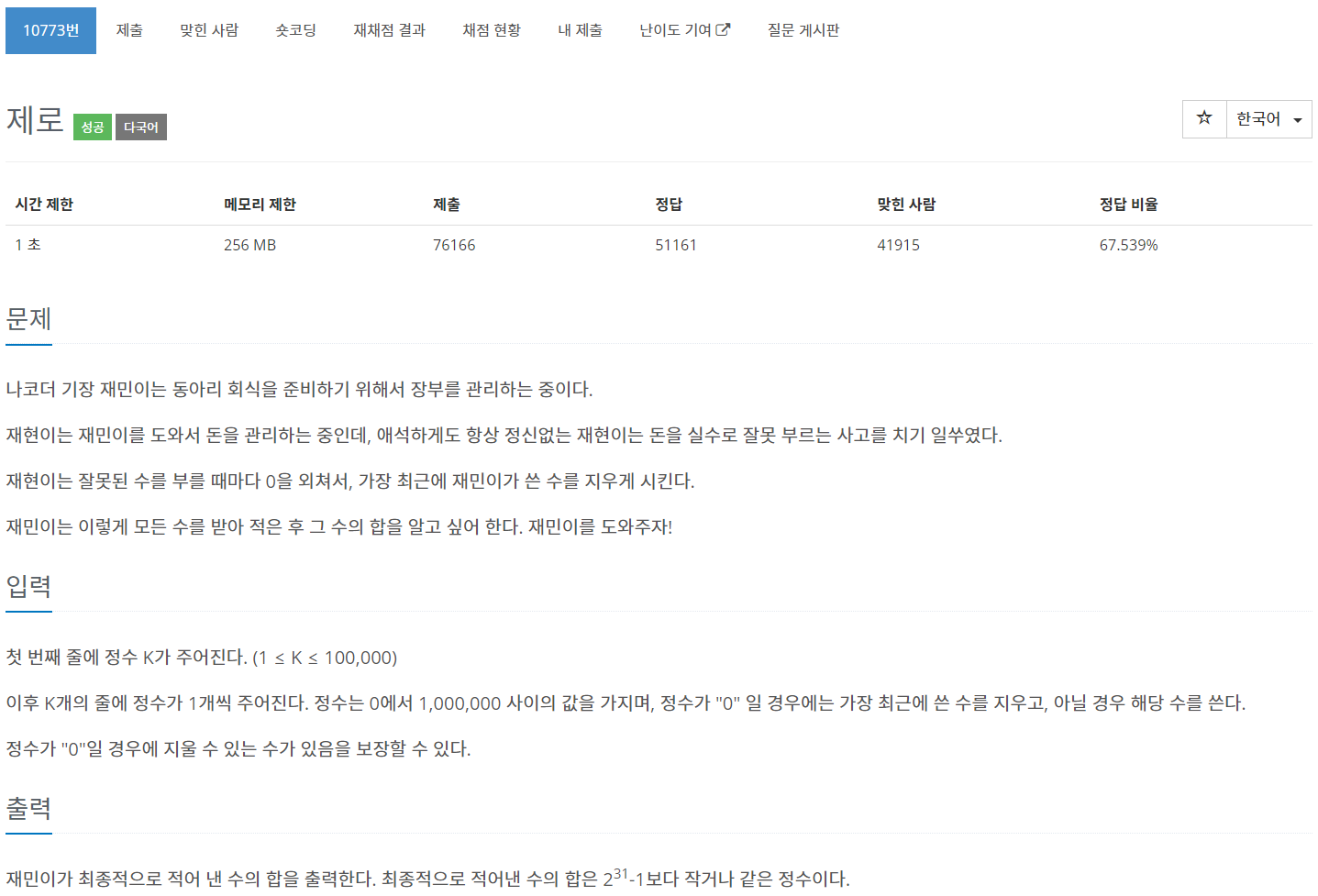 | [BaekJoon] 10773번 제로 문제풀이 (Success) (0) | 2023.08.04 |