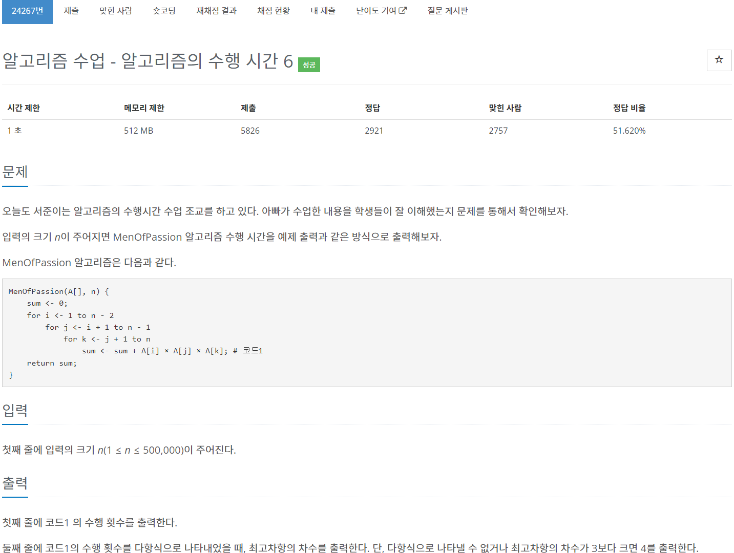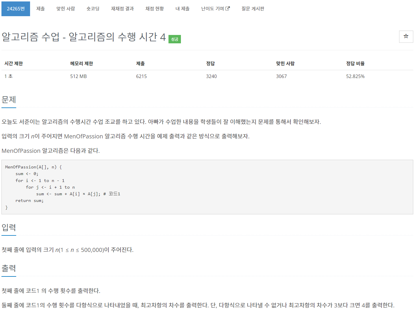 | [BaekJoon] 24266번 알고리즘 수업 - 알고리즘의 수행 시간 5 문제풀이 (Success) (0) | 2023.06.07 |