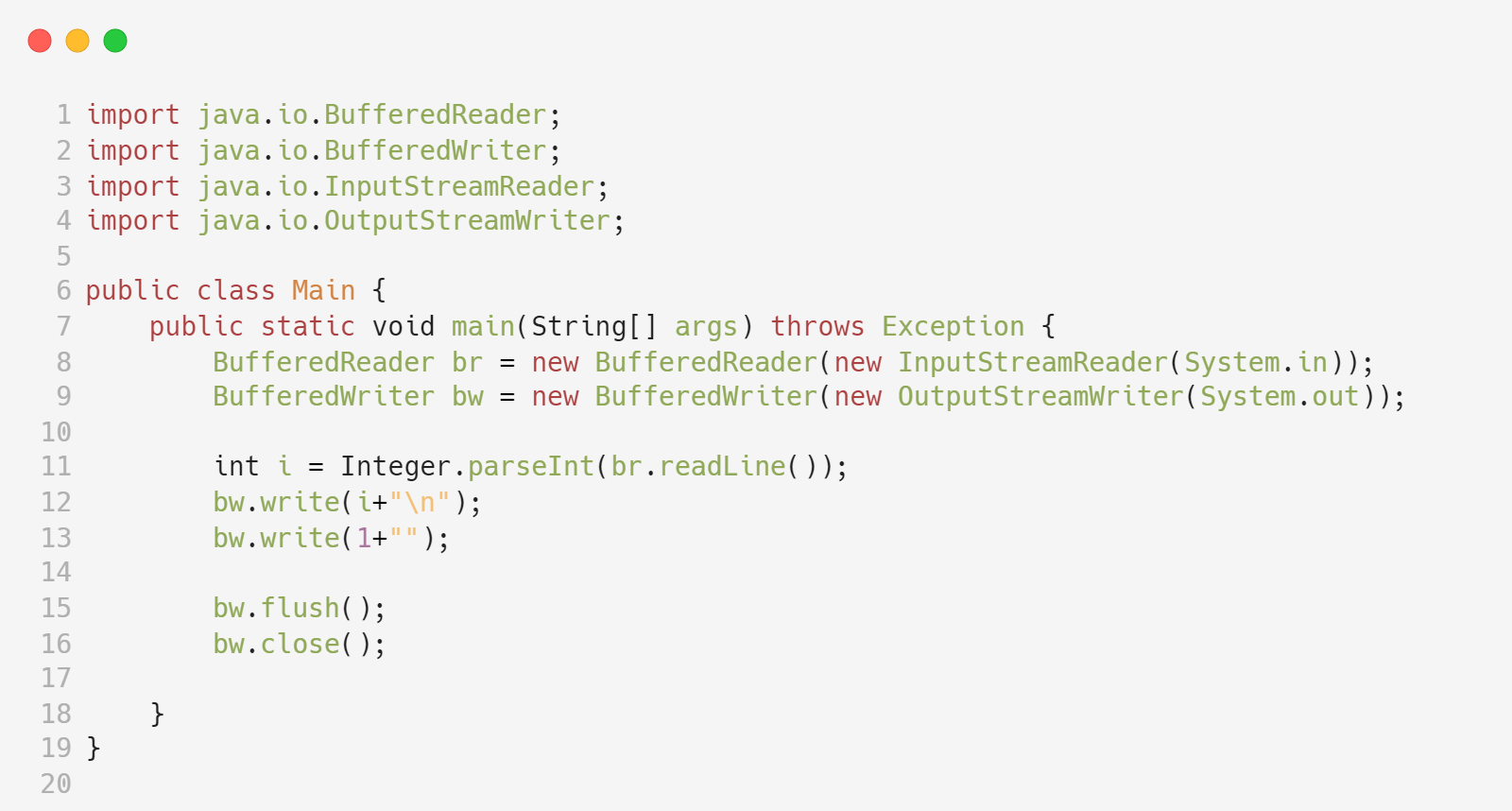 오늘도 서준이는 알고리즘의 수행시간 수업 조교를 하고 있다. 아빠가 수업한 내용을 학생들이 잘 이해했는지 문제를 통해서 확인해보자. 입력의 크기 n이 주어지면 MenOfPassion 알고리즘 수행 시