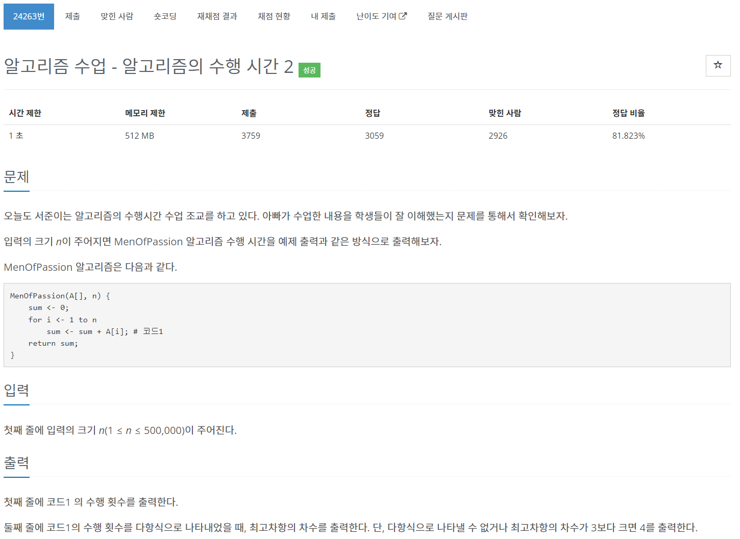 24263번: 알고리즘 수업 - 알고리즘의 수행 시간 2
