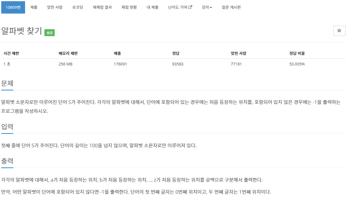| [BaekJoon] 10809번 알파벳 찾기 문제풀이 (Success) (1) | 2023.04.17 |
