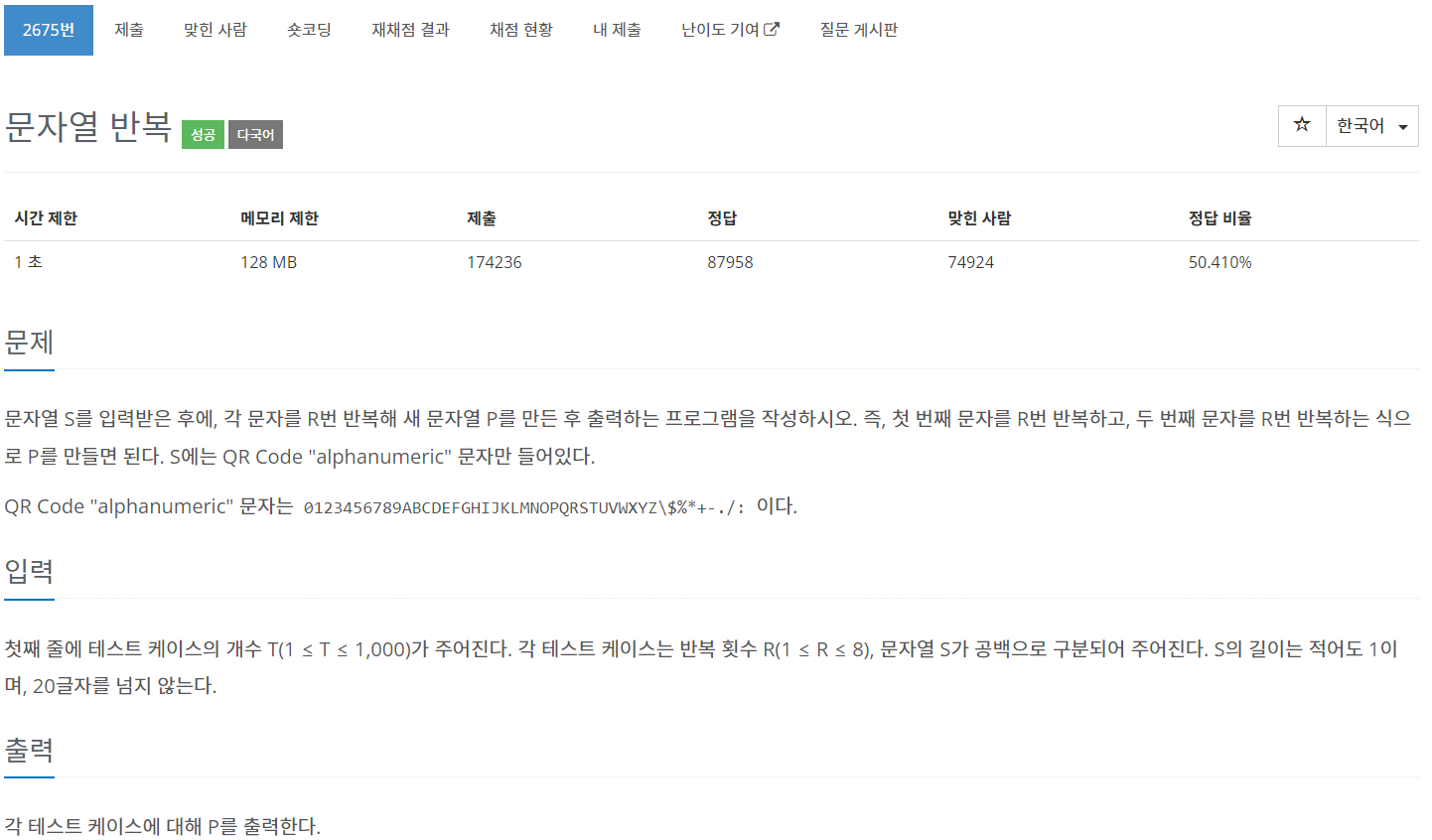 | [BaekJoon] 2675번 문자열 반복 문제풀이 (Success) (0) | 2023.04.19 |