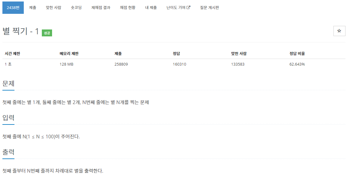 | [BaekJoon] 2438번 별 찍기 - 1 문제풀이 (Success) (0) | 2023.03.29 |