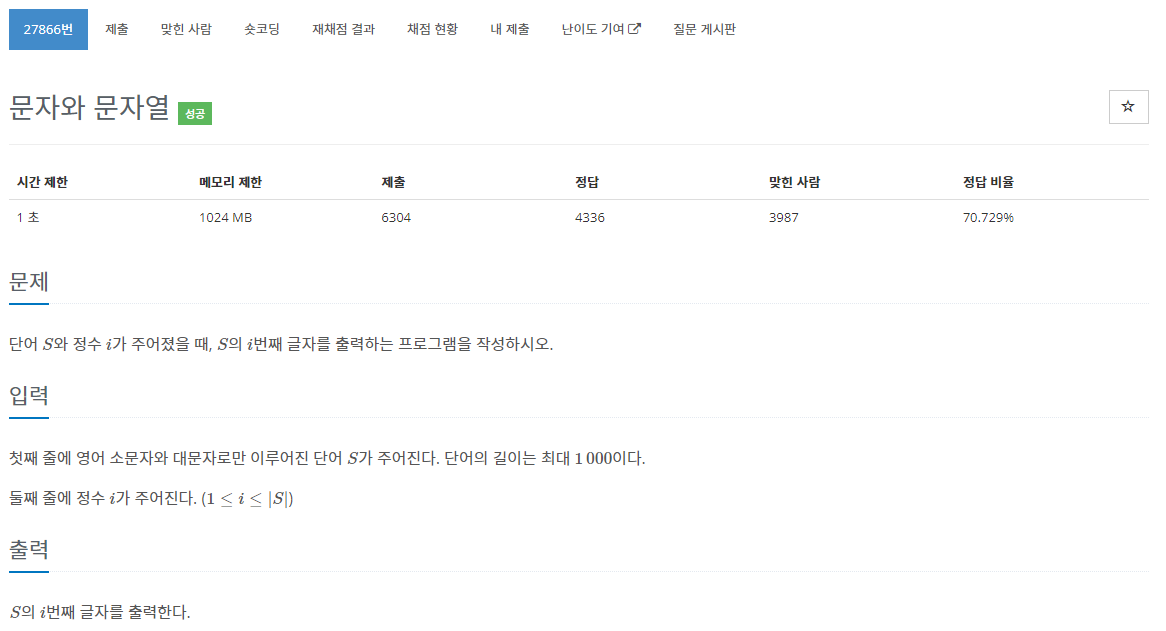 | [BaekJoon] 27866번 문자와 문자열 문제풀이 (Success) (0) | 2023.03.23 |