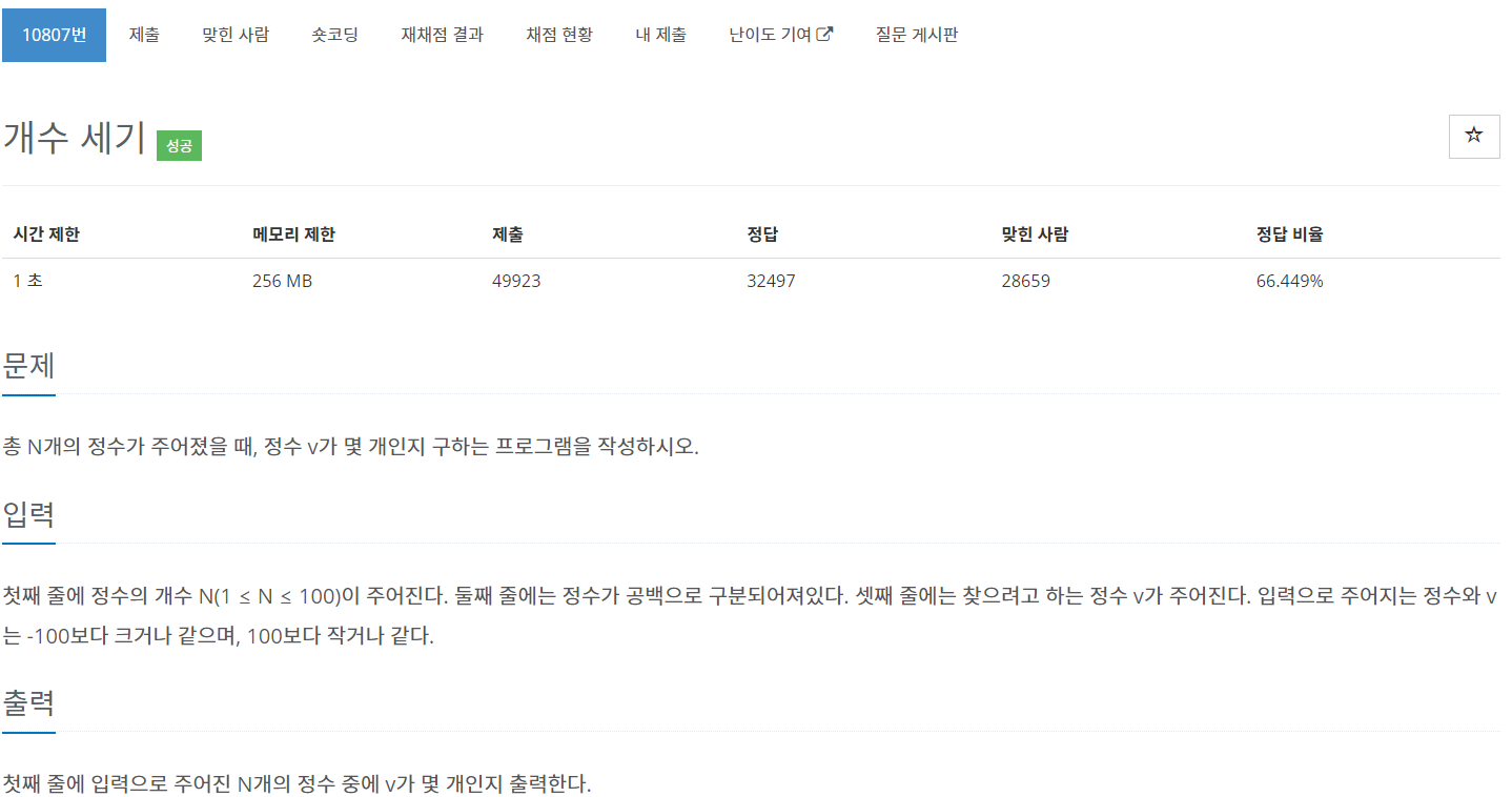 | [BaekJoon] 10807번 개수 세기 문제풀이 (Success) (0) | 2023.03.22 |