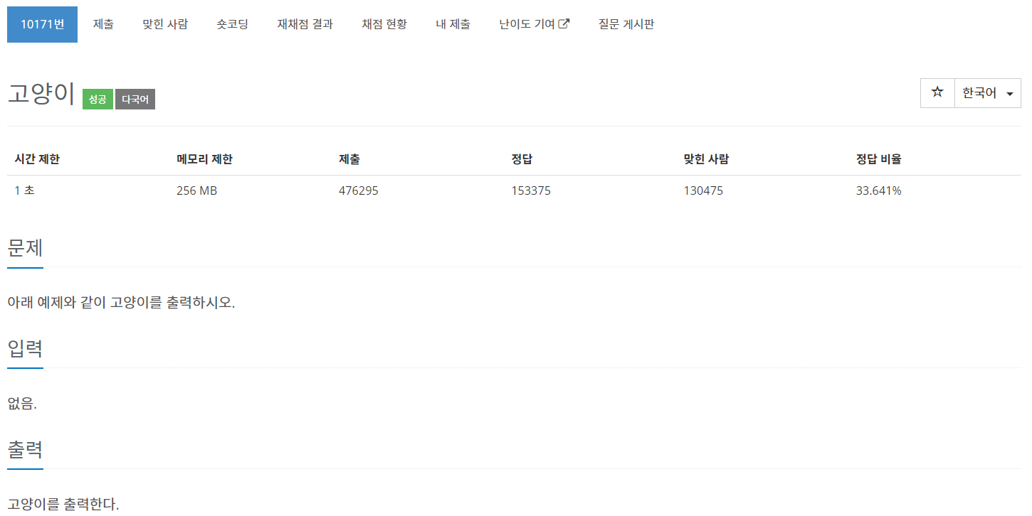 | [BaekJoon] 10171번 고양이 문제풀이 (Success) (0) | 2023.03.09 |