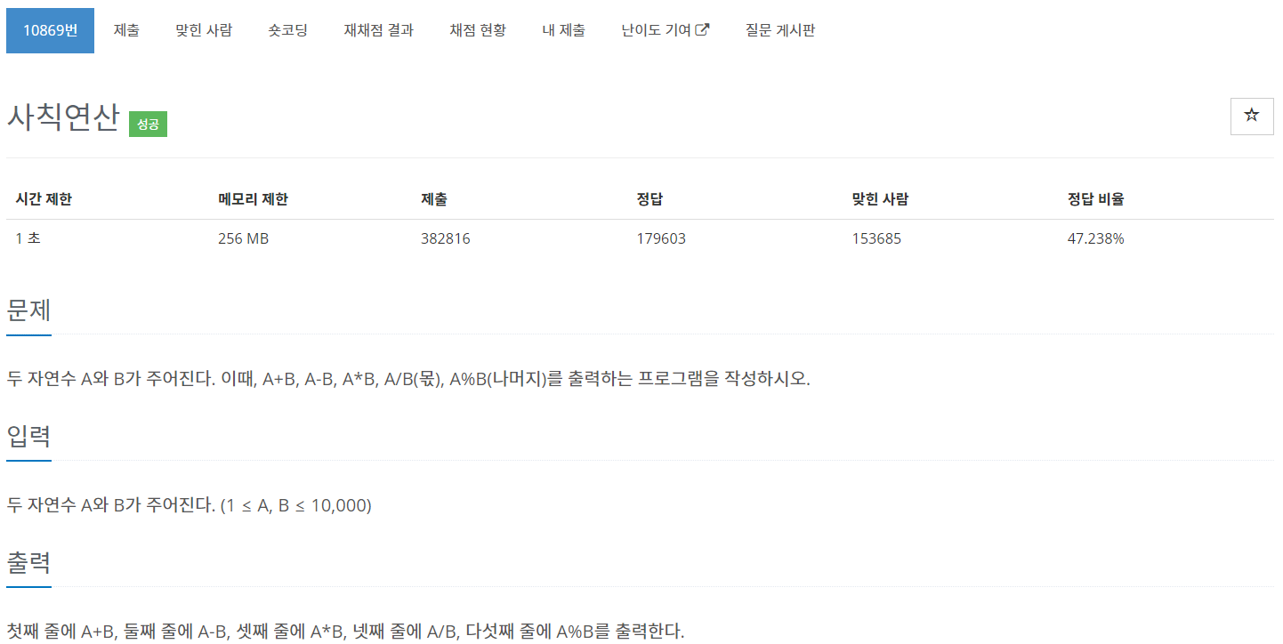 10869번: 사칙연산