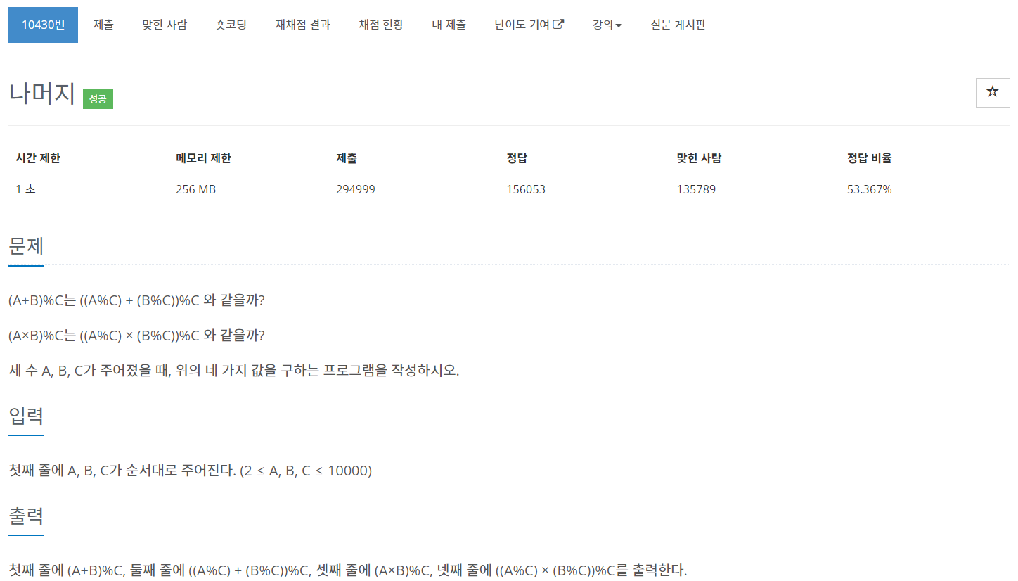 | [BaekJoon] 10430번 나머지 문제풀이 (Success) (0) | 2023.03.08 |