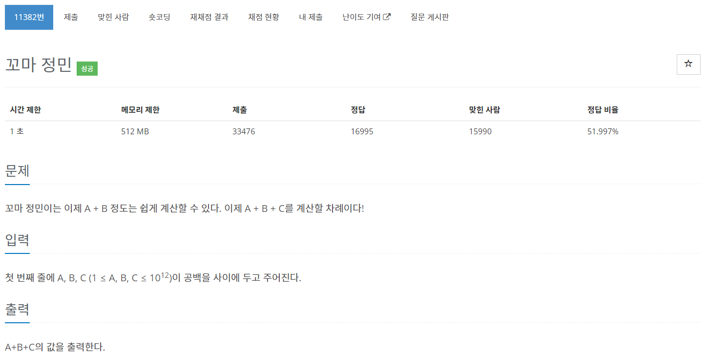 | [BaekJoon] 11382번 꼬마 정민 문제풀이 (Success) (0) | 2023.03.07 |