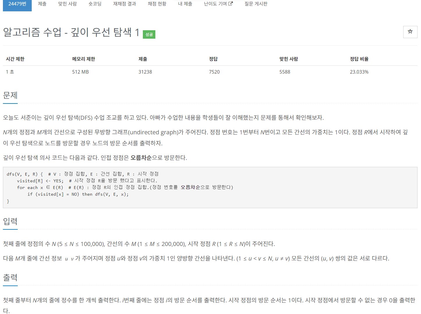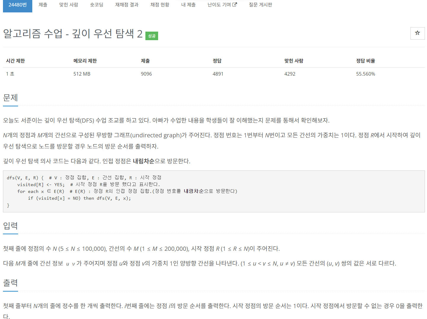 | [Algorithm_Java] 24480번 알고리즘 수업 - 깊이 우선 탐색 2 (Success) (0) | 2023.10.08 |