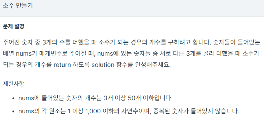 // 1. 3개의 수를 더했을 때 소수가 되는 경우의 개수