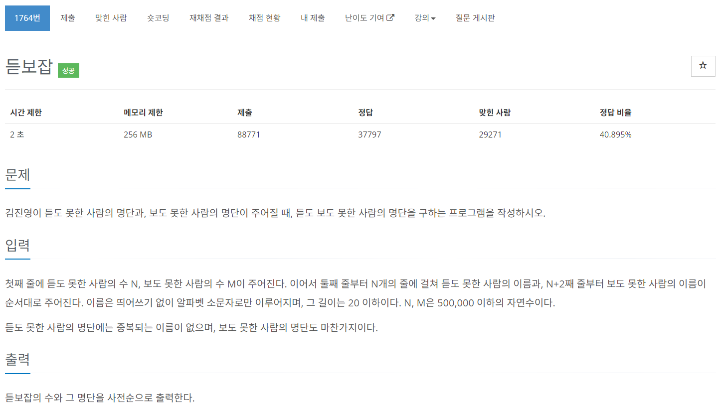 | [BaekJoon] 1764번 듣보잡 문제 풀이 (Success) (0) | 2023.09.04 |