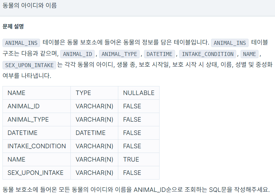 ORDER BY ANIMAL_ID;