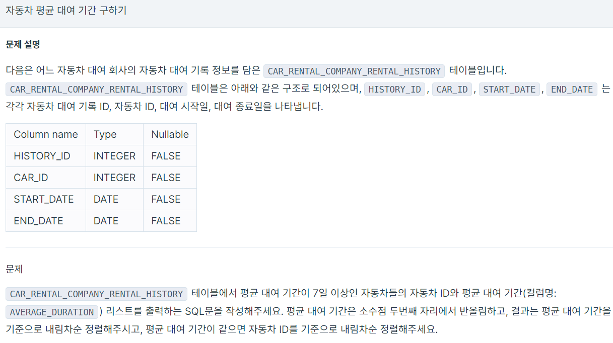| [Algorithm_SQL] 자동차 평균 대여 기간 구하기 (Success) (0) | 2023.10.16 |