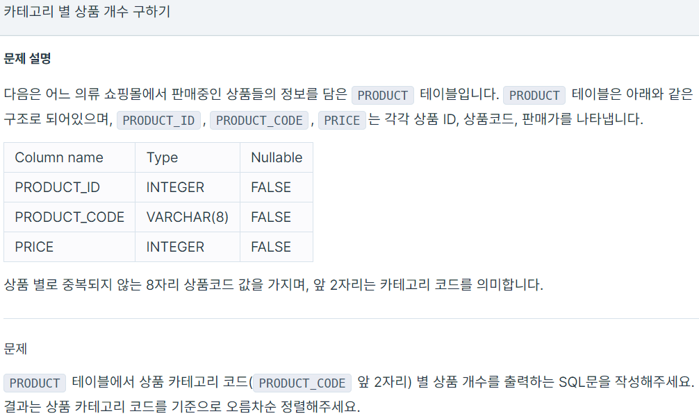 | [Algorithm_SQL] 카테고리 별 상품 개수 구하기 (Success) (0) | 2023.10.02 |
