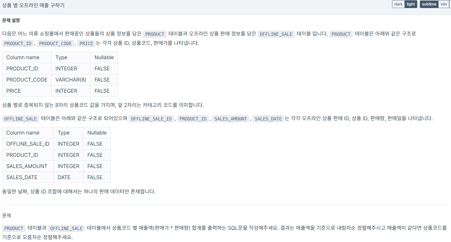 [Algorithm_SQL] 상품 별 오프라인 매출 구하기 (Success)