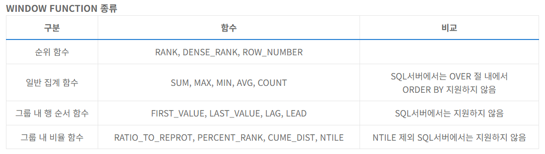 - 개별 행마다 계산하므로 Group by보다 비효율적일 수 있음