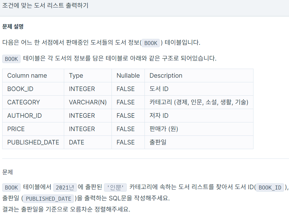 | [Programmers] 조건에 맞는 도서 리스트 출력하기 (Success) (0) | 2023.09.13 |