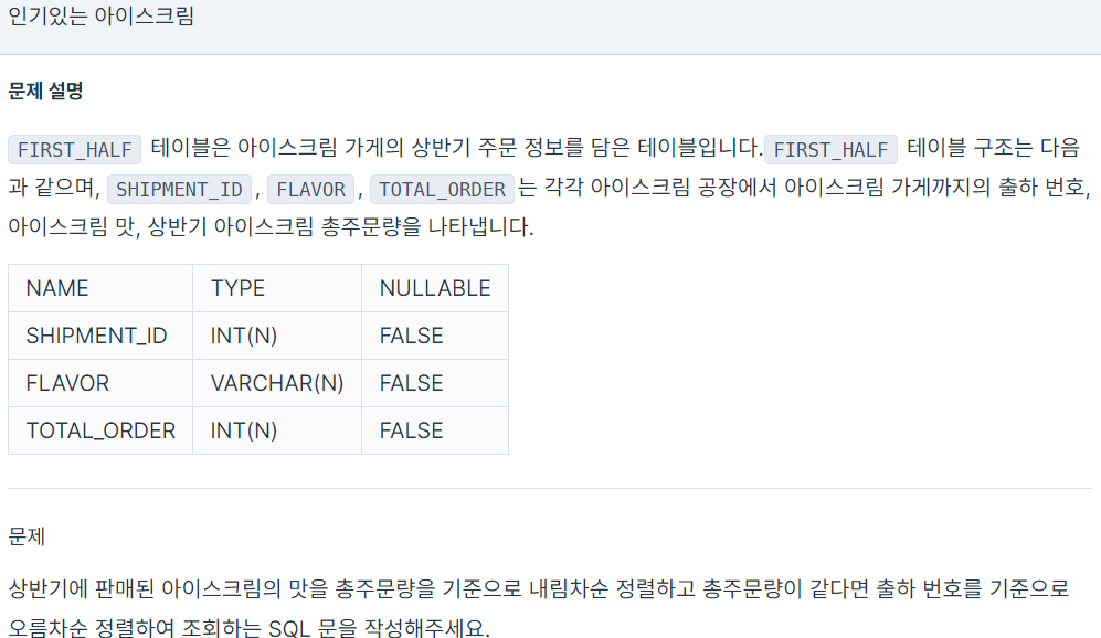 | [Programmers] 인기있는 아이스크림 (Success) (0) | 2023.09.11 |