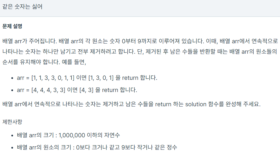 | [Programmers] 같은 숫자는 싫어 (Success) (1) | 2023.09.16 |