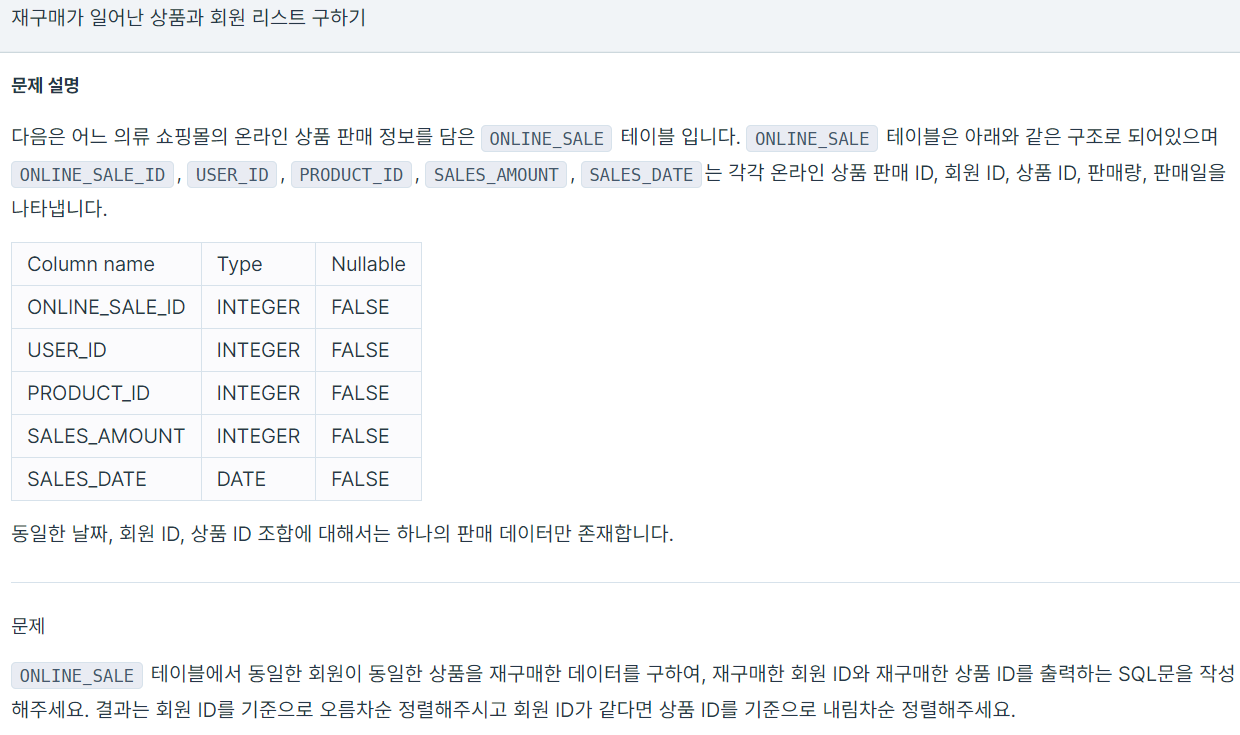 [Algorithm_SQL] 재구매가 일어난 상품과 회원 리스트 구하기 (Success) (0) | 2023.10.06 |