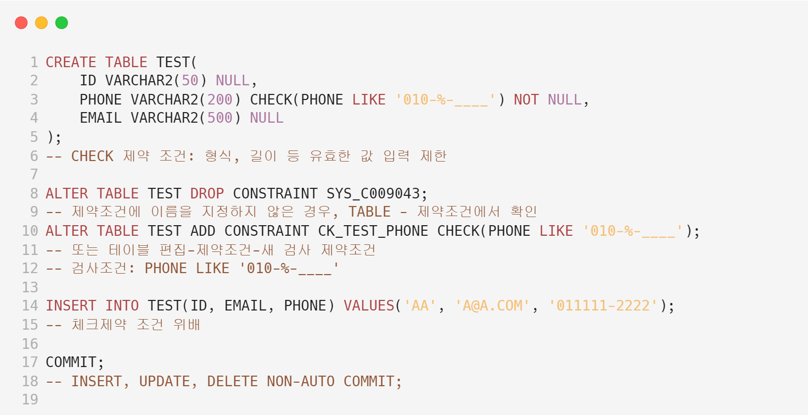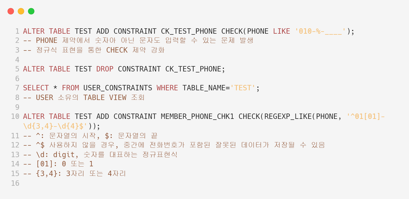 | Oracle SQL 강의 - 44강 정규식을 이용한 체크 제약조건 (0) | 2023.03.31 |