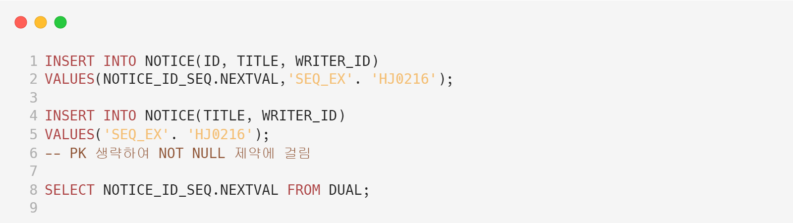 NOTICE_ID_SEQ 삽입없이 SEQ 사용