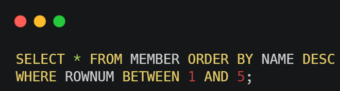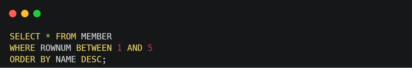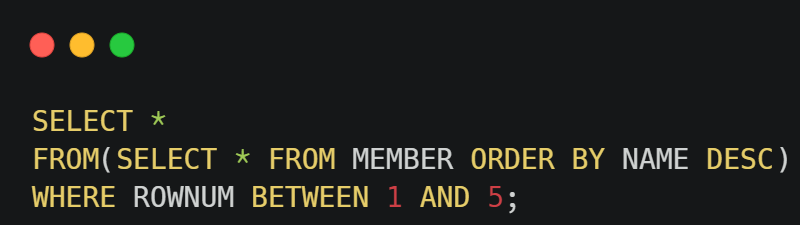 ROWNUM이 1 ~5 사이의 값을 추출 후 NAME으로 DESCENDING하게 됨