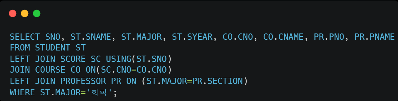 Oracle SQL로 다음 Source Code를 실행할 경우,