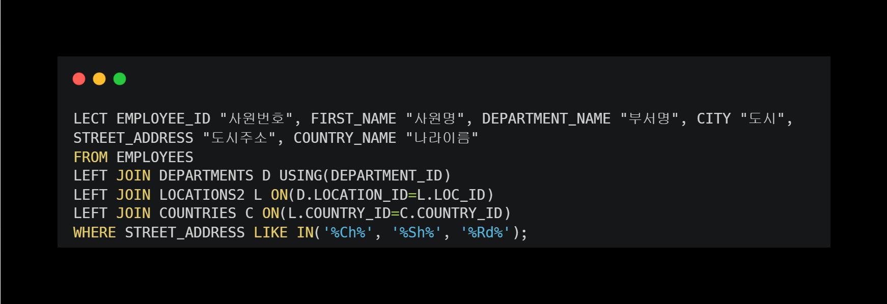 | [해결 방법] ORA-25154: USING 절의 열 부분은 식별자를 가질 수 없음 (0) | 2023.03.01 |