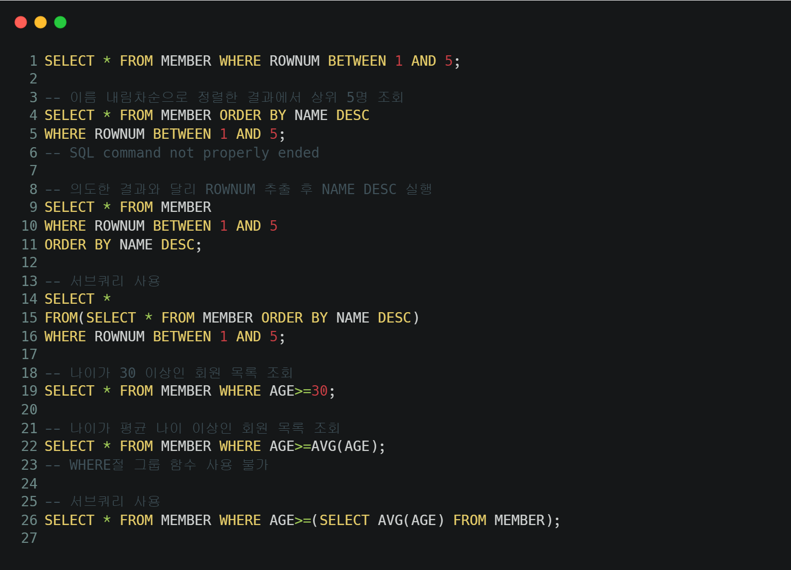 | Oracle SQL 강의 - 33강 부조회(서브쿼리) (0) | 2023.03.20 |