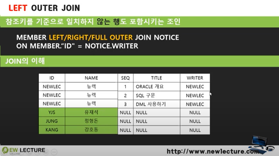 | Oracle SQL 강의 - 35강 LEFT/RIGHT/FULL 아웃터 조인(OUTER JOIN) (0) | 2023.03.22 |