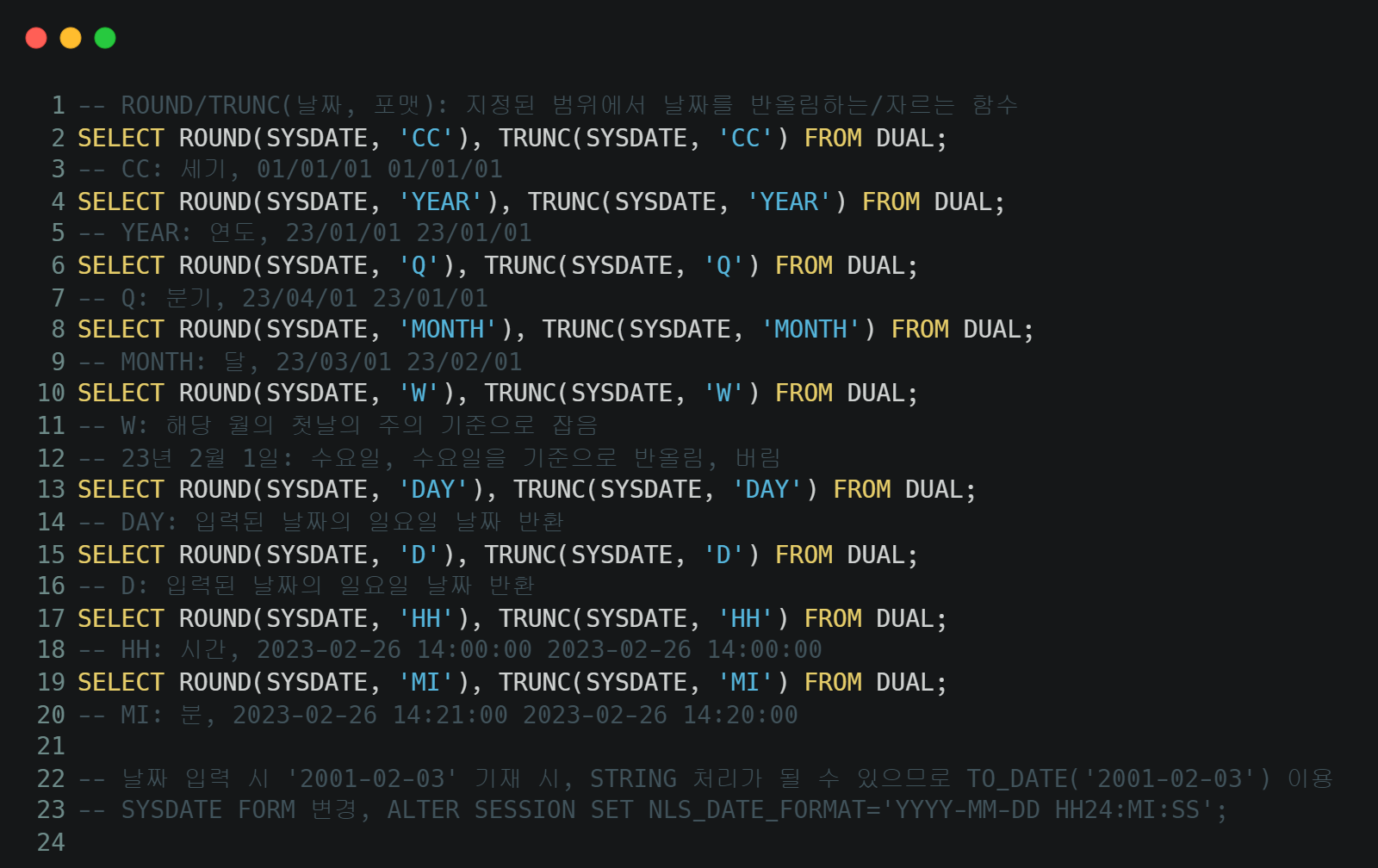| Oracle SQL 강의 - 27강 형식 변환 함수(TO_DATE/TO_CHAR/TO_NUMBER/TO_TIMESTAMP) (0) | 2023.03.14 |