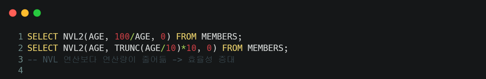 | Oracle SQL 강의 - 28강 NULL 관련 함수(NVL/NVL2/NULLIF)와 DECODE 함수 (1) | 2023.03.15 |