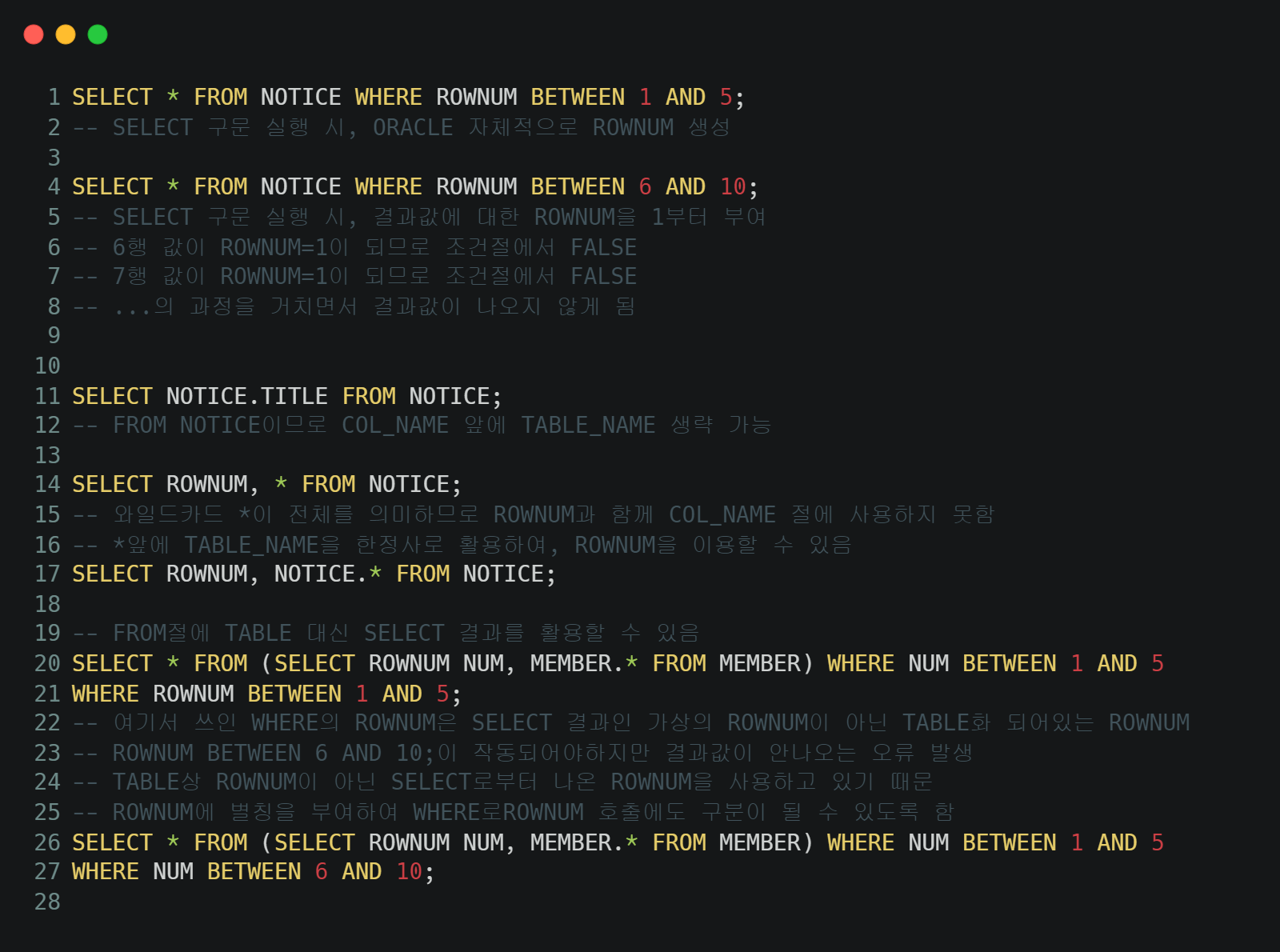 | Oracle SQL 강의 - 20강 ROWNUM 그리고 행 제한하기 (0) | 2023.03.07 |
