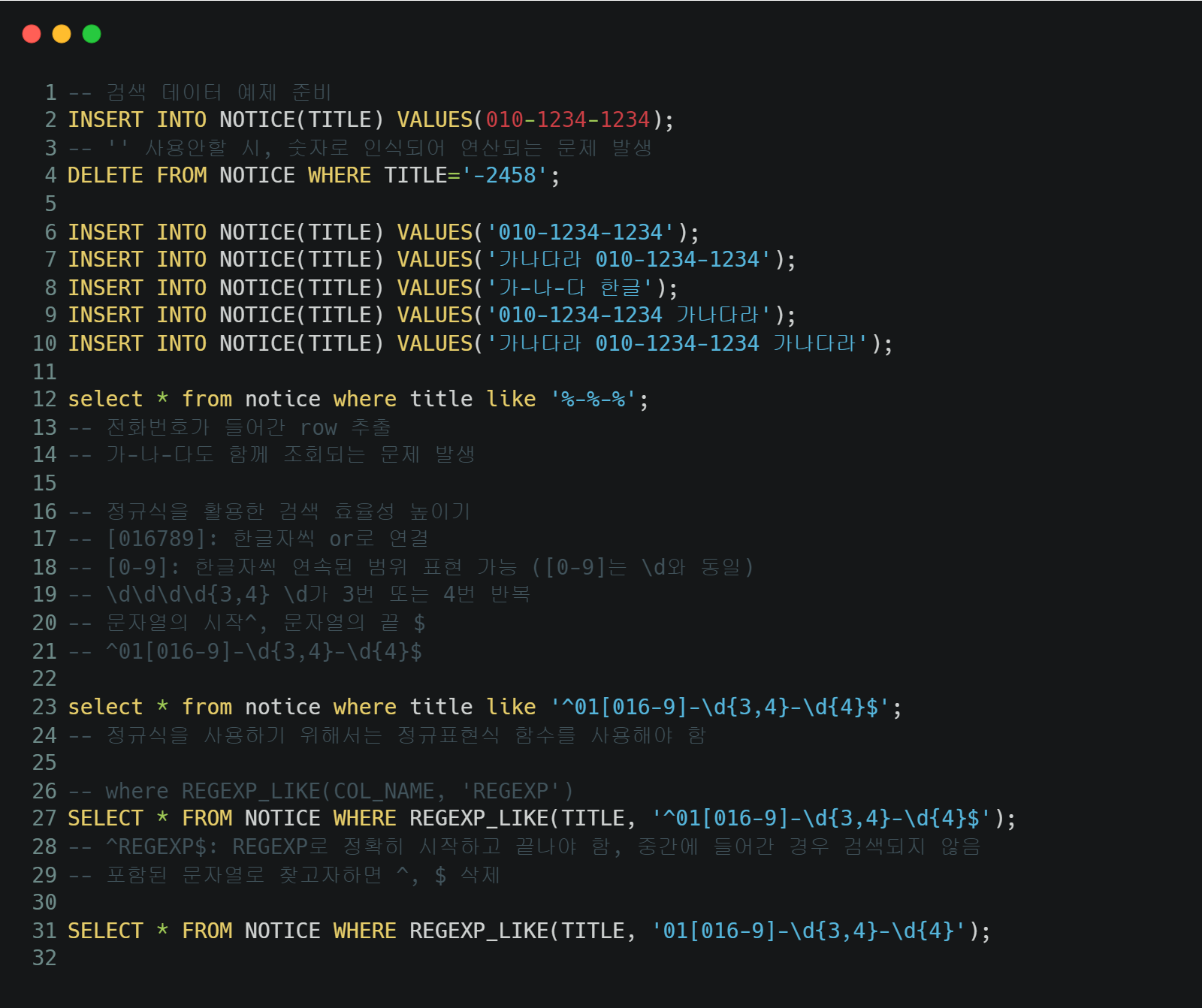 | Oracle SQL 강의 - 18강 정규식을 이용한 패턴 비교(REGEX_LIKE) (0) | 2023.03.05 |