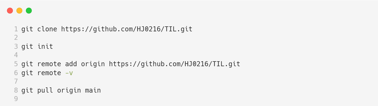 : remote repo에 있는 데이터를 최초로 다운받을 때 사용하는 명령어