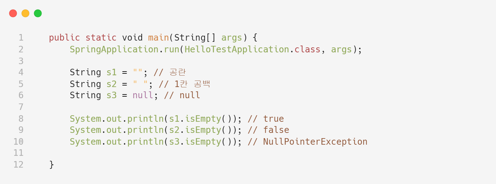 - Null값이라도 실제 text가 없을 경우, false 반환