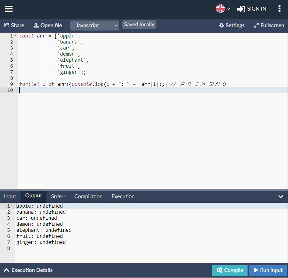 : 배열의 인덱스 순수대로 반복문 진행 보장